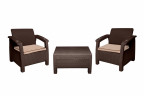 Мягкие подушки, стильный дизайн с фактурой плетения под искусственный  ротанг, удобная спинка, широкие подлокотники с подстаканниками - это далеко не полный список особенностей комплекта.